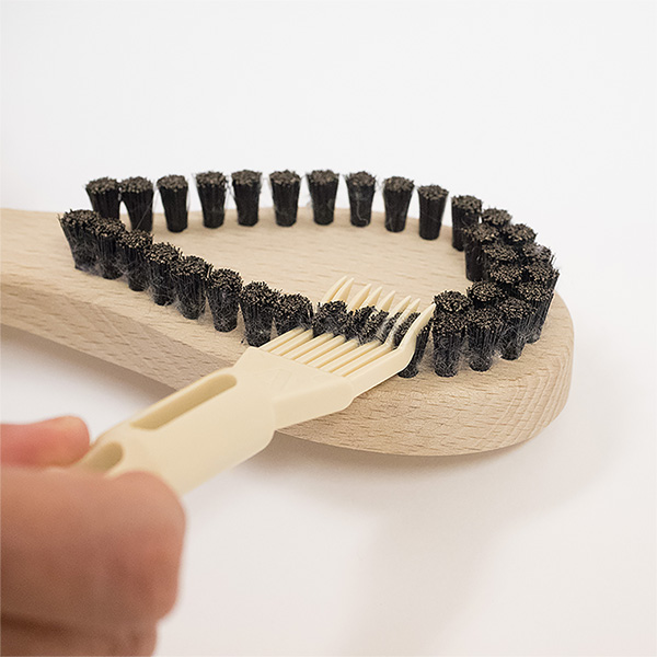 材質:持ち手=天然木、毛=猪毛、ブラシクリーナー=ポリアセタール