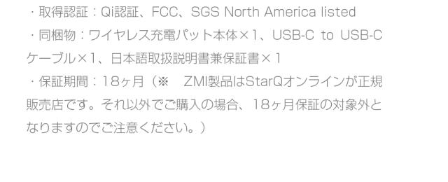 ・ 取得認証:Qi認証、FCC、SGS North America listed