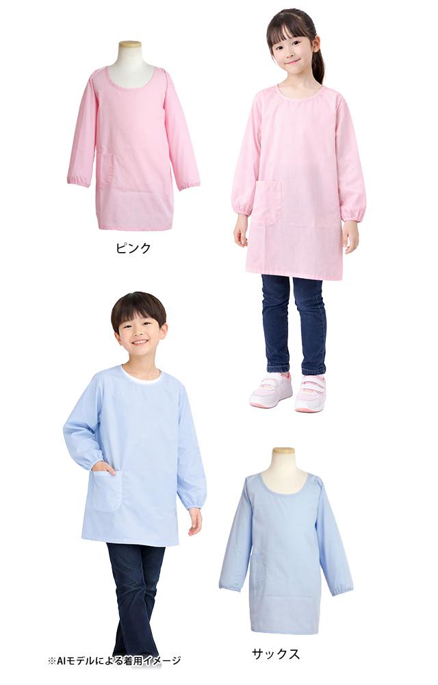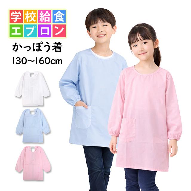 給食 エプロン かっぽう着 白衣 長袖 子供用 キッズ 男の子 女の子 無地 学校 子供エプロン 小学生 130cm 140cm 150cm 160cm