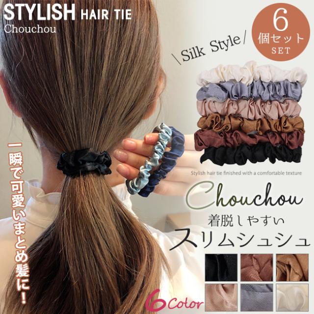 【短納期】ヘアバンド 色違い6個セット 髪留め レディース ヘアゴム ヘアアクセ シルク ほんのり上品な光沢感 春 フォーマル スリム シンプル ヘアアレンジ ポニーテール くるりんぱ 結婚式 パーティー ヘアアクセサリー プレゼント冬