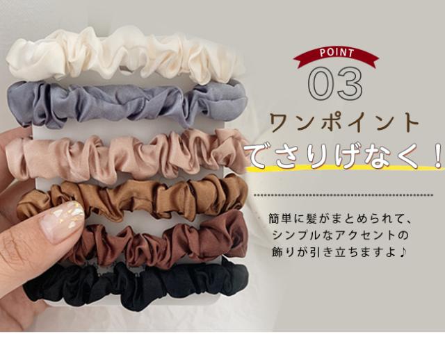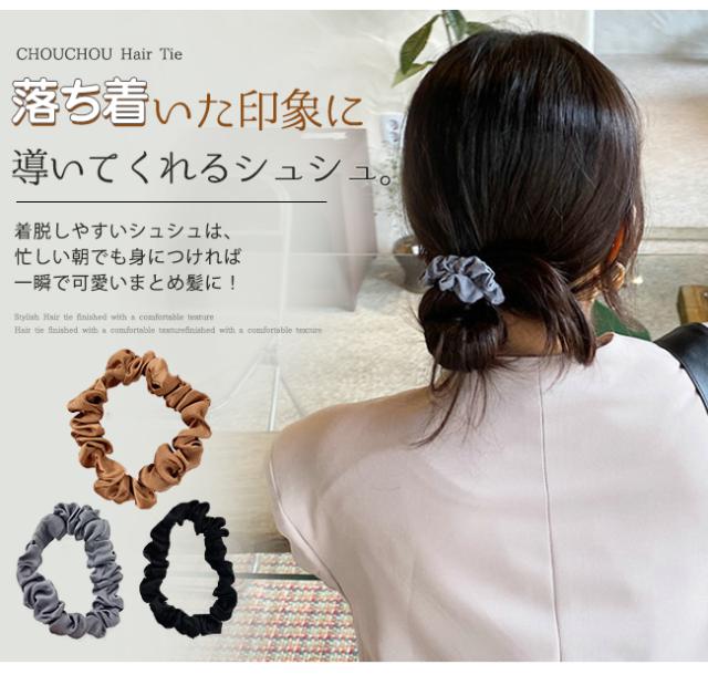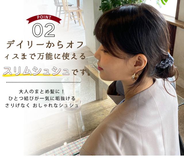 ヘアゴムの代わりにデイリーに使えるスリムタイプのシュシュです。