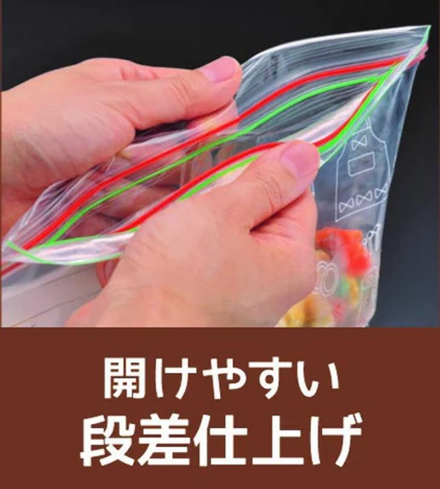 商品概要:開けやすい段差仕上げのジップ付フリーザーバッグ