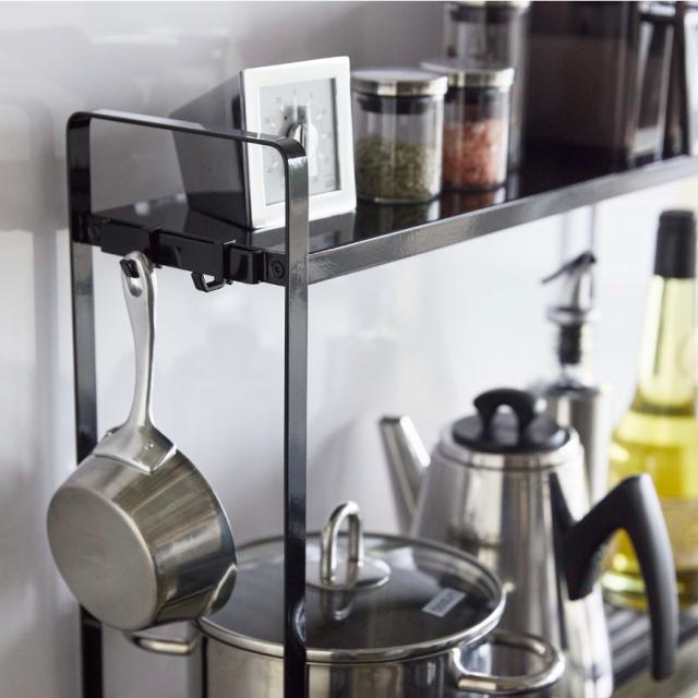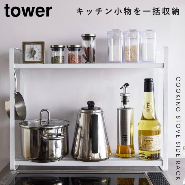tower タワー コンロ横ラック 2段 収納ラック キッチンラック 山崎実業 コンロサイドラック スパイスラック 隙間収納 調味料ラック スリム フック 調理 隙間 省スペース 北欧 おしゃれ シンプル スリム コンロ横 シンク上 スチール ホワイト ブラック 白 黒 サイドラック