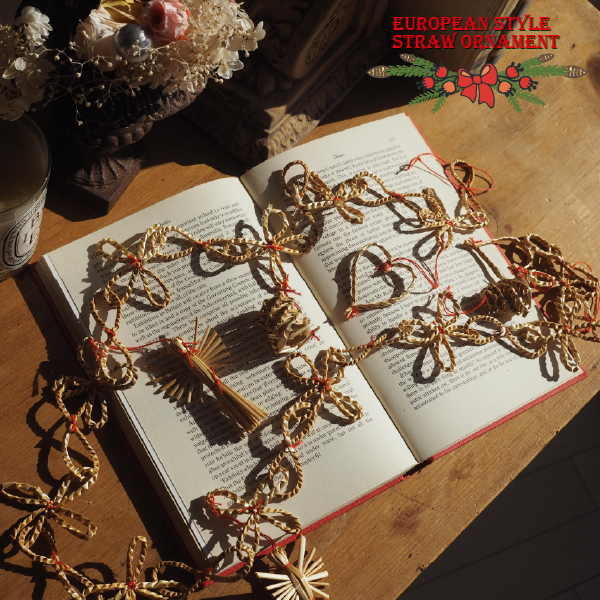 繊細な麦わら細工が連なった素朴で牧歌的なストローガーランドは、クリスマスの壁飾りや、インテリアとして、素敵な空間を演出してくれます。