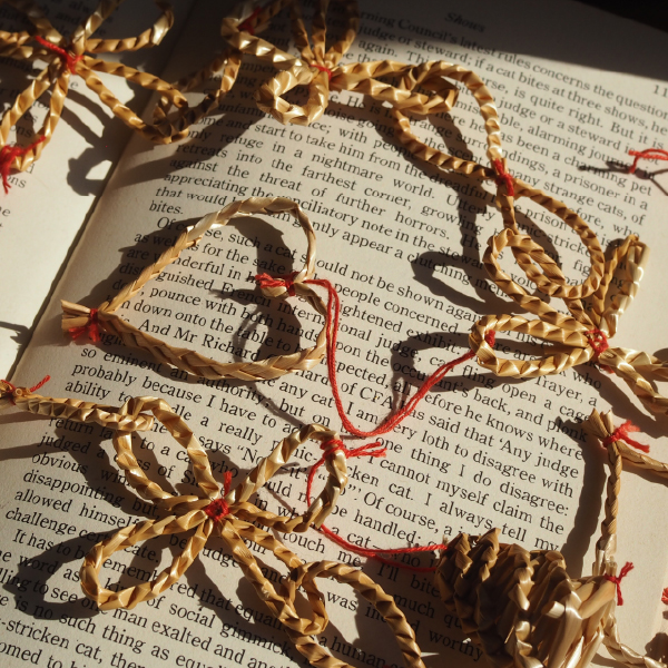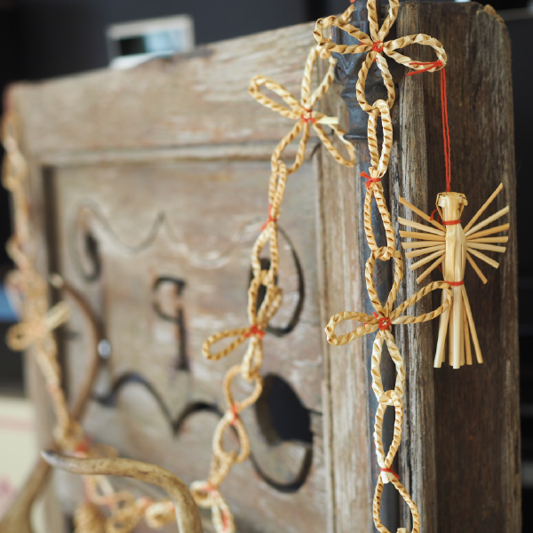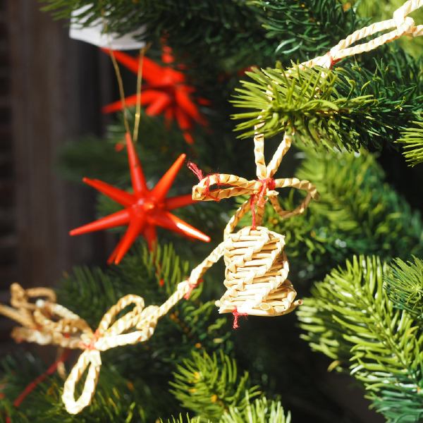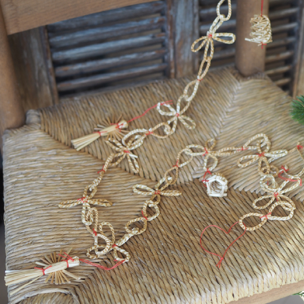 クリスマスツリーにぴったりな麦わら細工の飾り(ストローガーランド)。