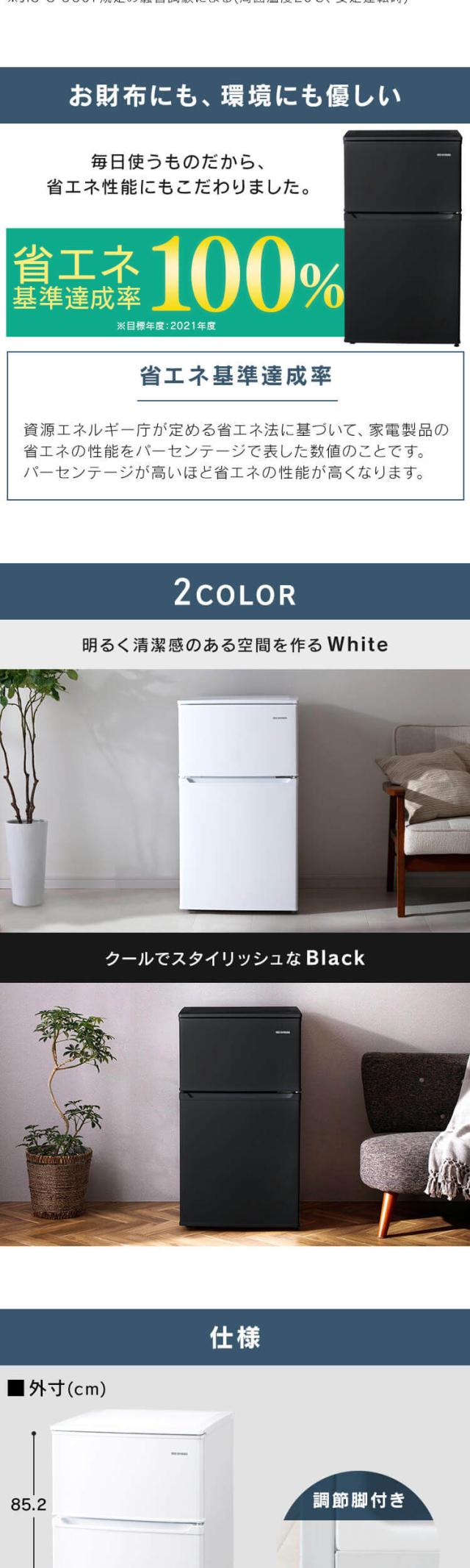 冷凍冷蔵庫90L IRSD-9B-W IRSD-9B-B ホワイト ブラック 全2色 2ドア 90リットル 冷蔵 冷凍 コンパクト 一人暮らし 1人暮らし キッチン 台所 アイリスオーヤマ 送料無料