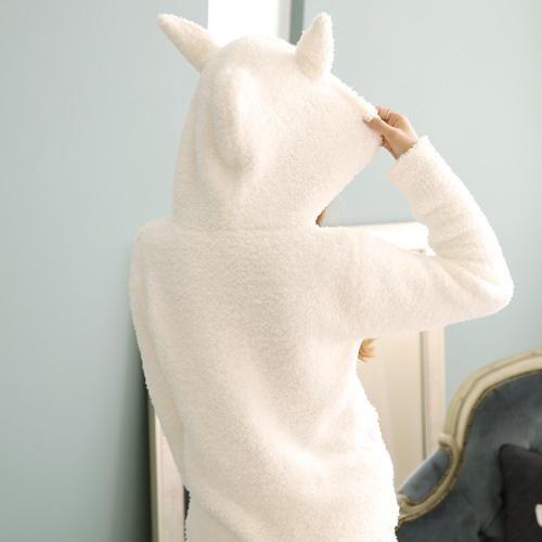 うさ耳&しっぽ付きパーカーのモコモコルームウェア(ROOMWEAR)。