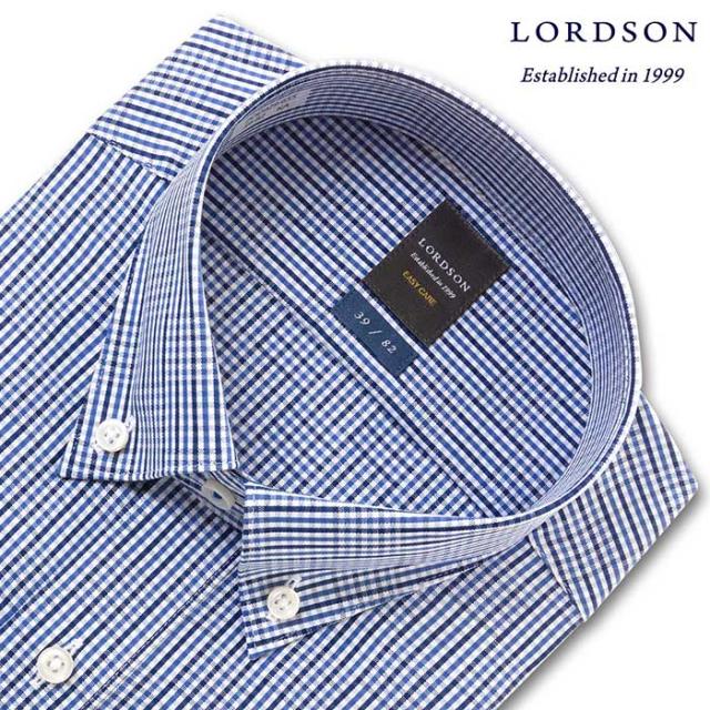 LORDSON 長袖 ワイシャツ メンズ 春夏秋冬 形態安定 ショートボタンダウン ミニブロック 【ZOD929-655】