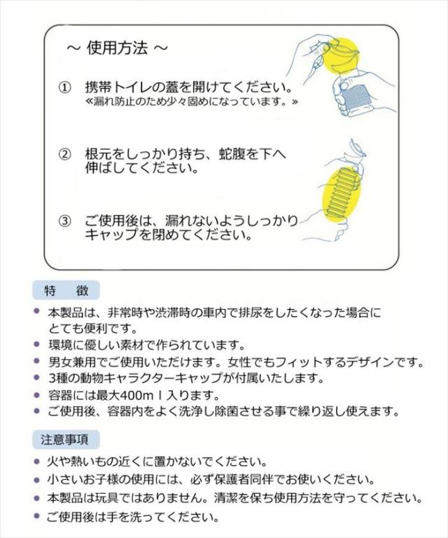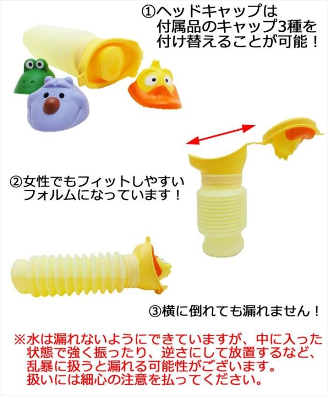 送料無料 1500円 携帯トイレ 子供用 ポータブルトイレ 小便用 男女兼用 キッズ アニマルキャップ付き 渋滞のとき大活躍 400ml イエロー e3toilet001