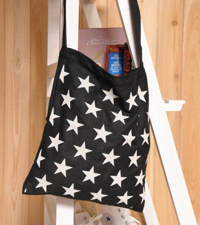 送料無料 ショルダーバッグ キャンバス 星柄 スター柄 在庫処分 かわいい レディース キッズ ブラック i8bag202