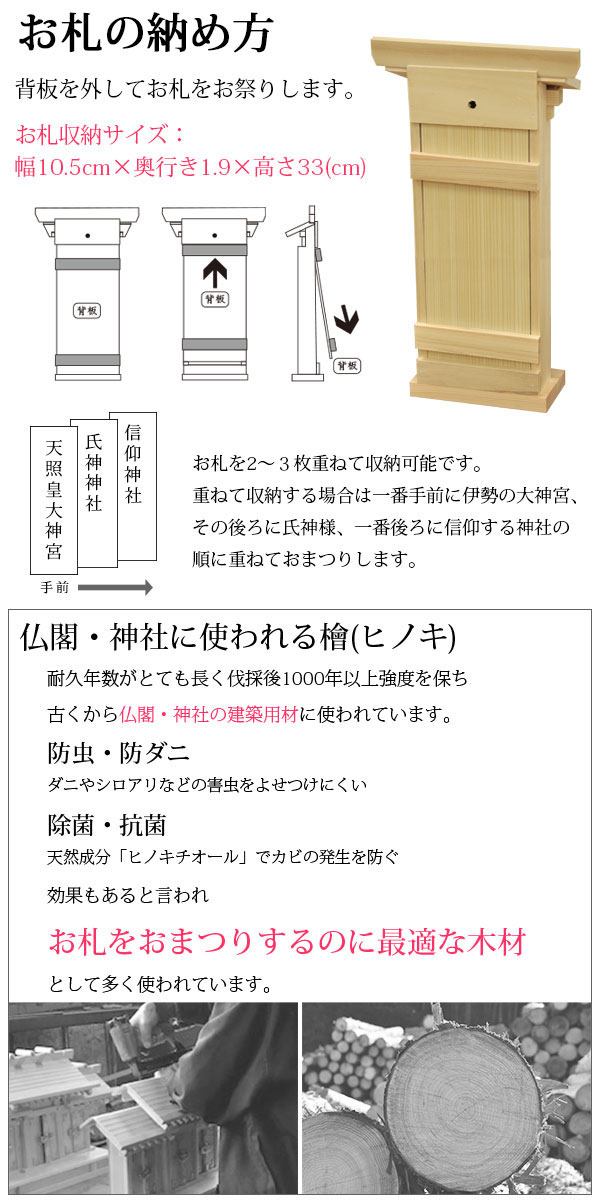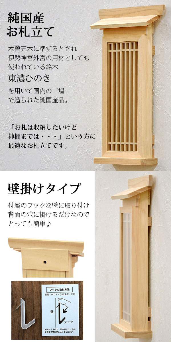 国内の工場で東濃ひのきを用いた純国産品のお札立て。