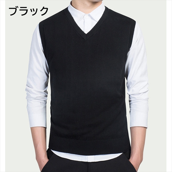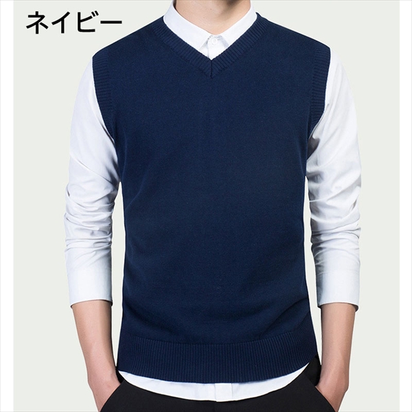 送料無料 2000円 ニットベスト Vネック メンズ ゆったり コット 春 秋 スクールベスト 吸水吸湿 毛玉ができにくい ビジネス 制服 学校 黒 グレー ネイビー i2vest002