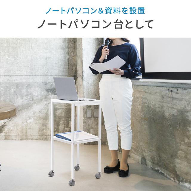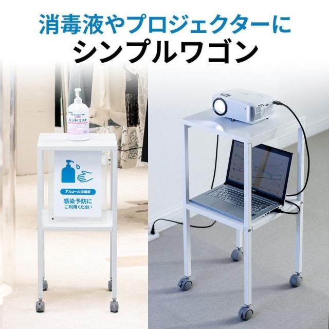 プロジェクタースタンド キャスター付き ホワイト 消毒液台[100-PRST004]