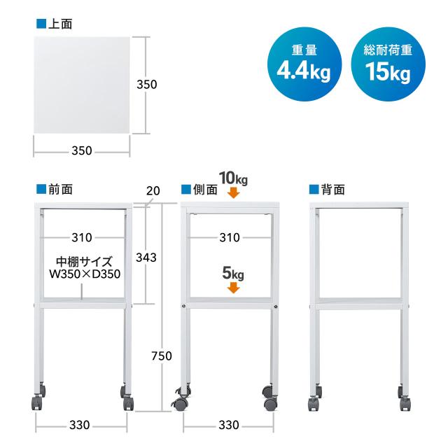 ■サイズ:約W350×D350×H750mm■天板/中棚サイズ:約W350×D350mm