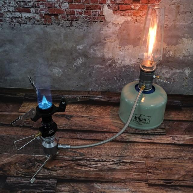 こちらの商品は付属のOD缶一体型バーナーやガスランタンを、バーチカル(垂直)に分岐できるスタンド型の変換アダプターとなっており、オプションのランタンポールをセンターポストとして取り付けると、さまざまな雰囲気を演出してくれます。