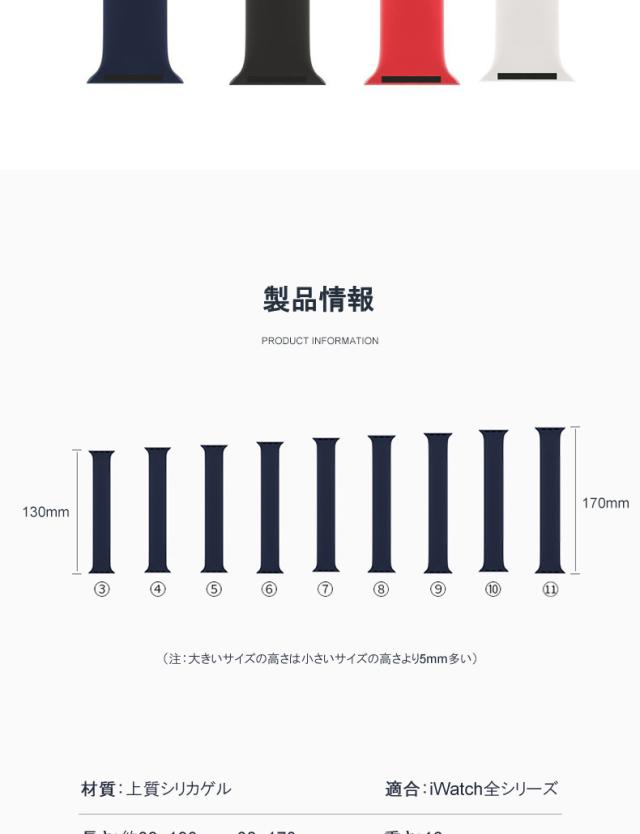 バンド長さ:130mm、135mm、140mm、145mm、150mm、 155mm、160mm、165mm、170mm