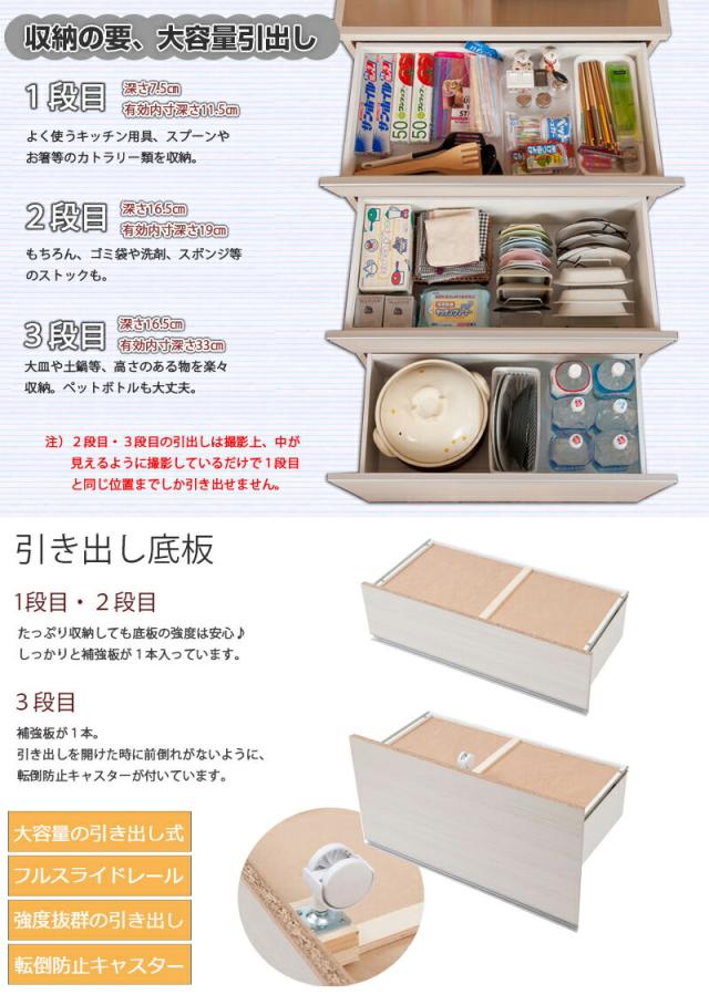 ■引出し内寸/(幅)70×奥行32.5×深さ(上)7.5〈有効11.5〉、(中)16.5〈有効19〉、(下)16.5〈有効33〉