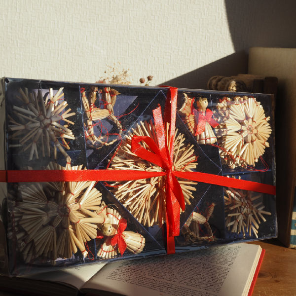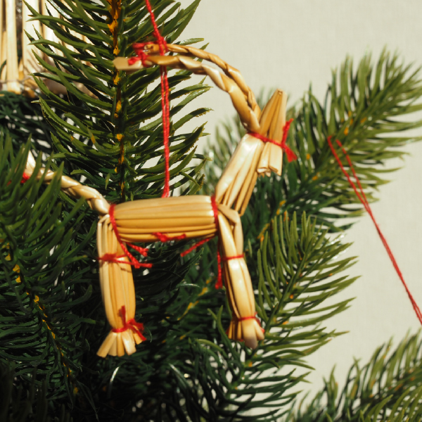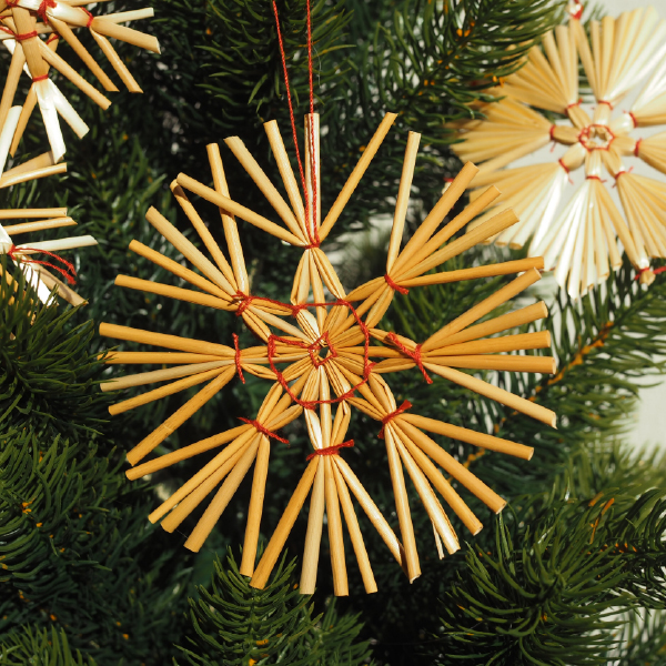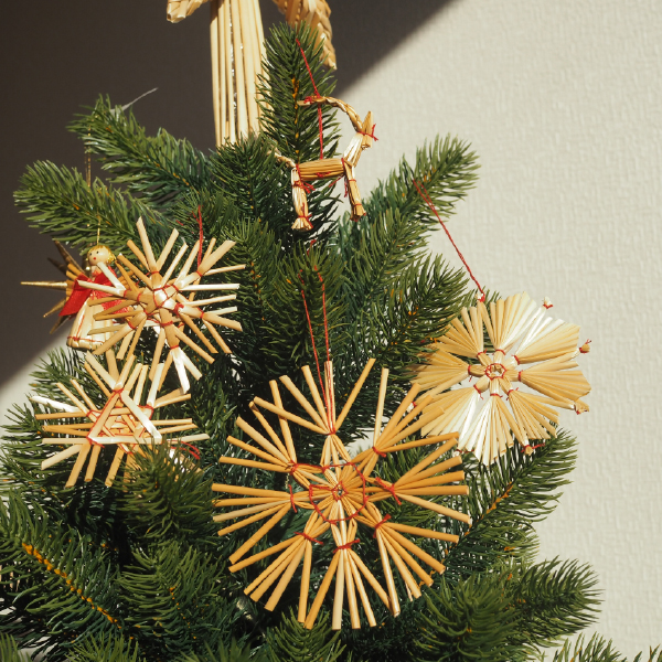 素朴な味わいのストローオーナメントがクリスマスを素敵に演出します。