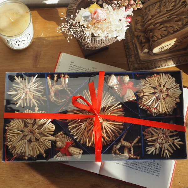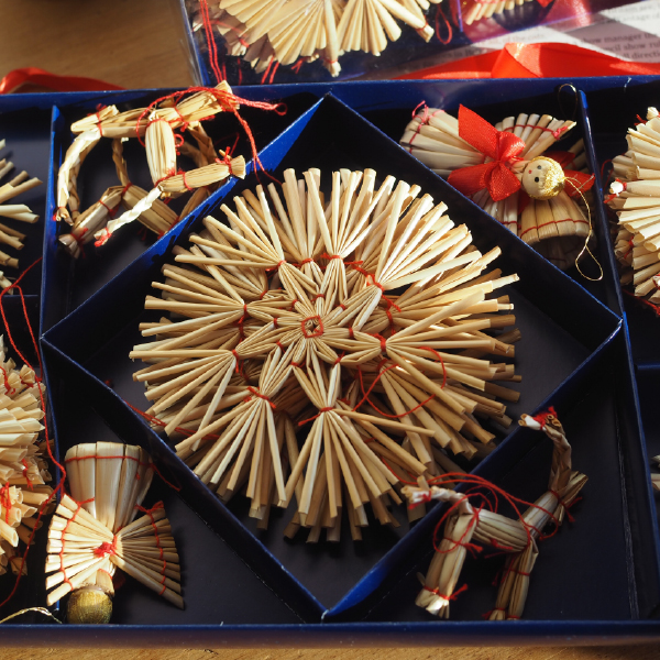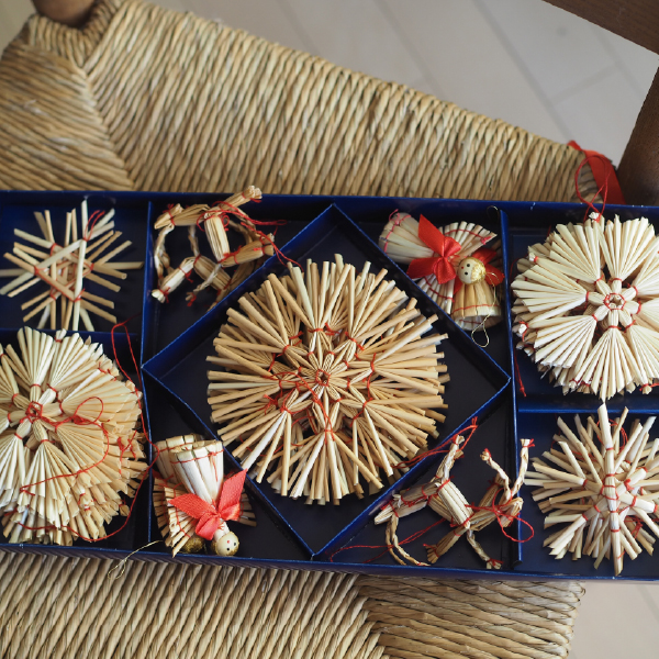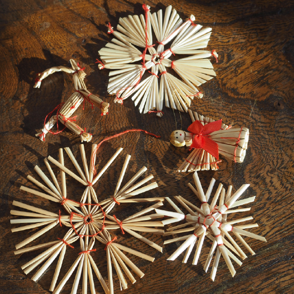 今では数少なくなった、伝統的なストロー・オーナメント。。