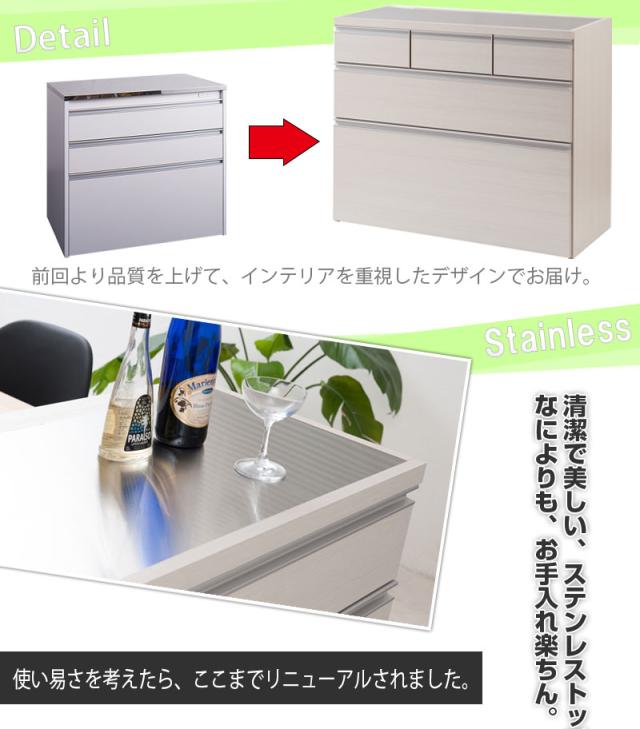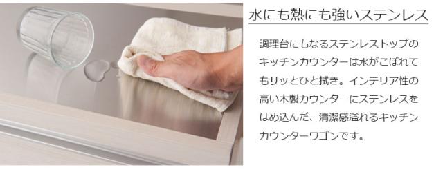 ■商品の仕様/前板:強化プリント紙化粧繊維板、天板:ステンレス貼り、その他:プリント紙化粧