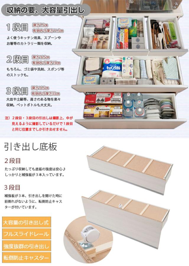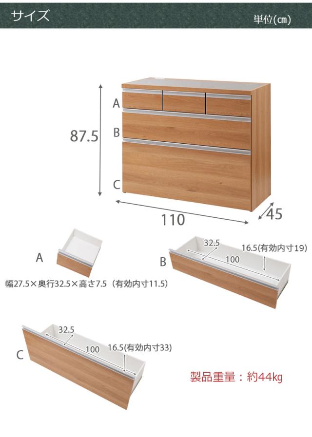 ■引出し内寸/(上)幅27.5×奥行32.5×深さ7.5〈有効11.5〉、幅100×奥行32.5×深さ(中)16.5〈有効19〉、(下)16.5〈有効33〉
