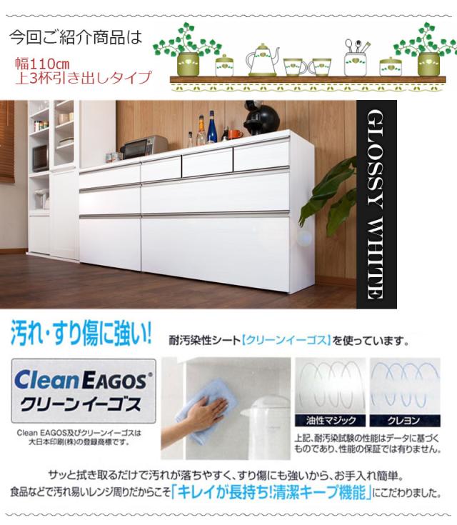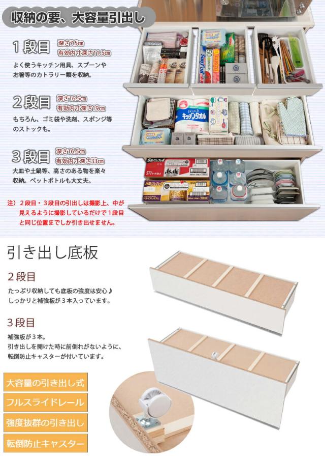 \ポイント消化!/ ステンレスキッチンカウンター幅110 上引出3杯 艶出しホワイト