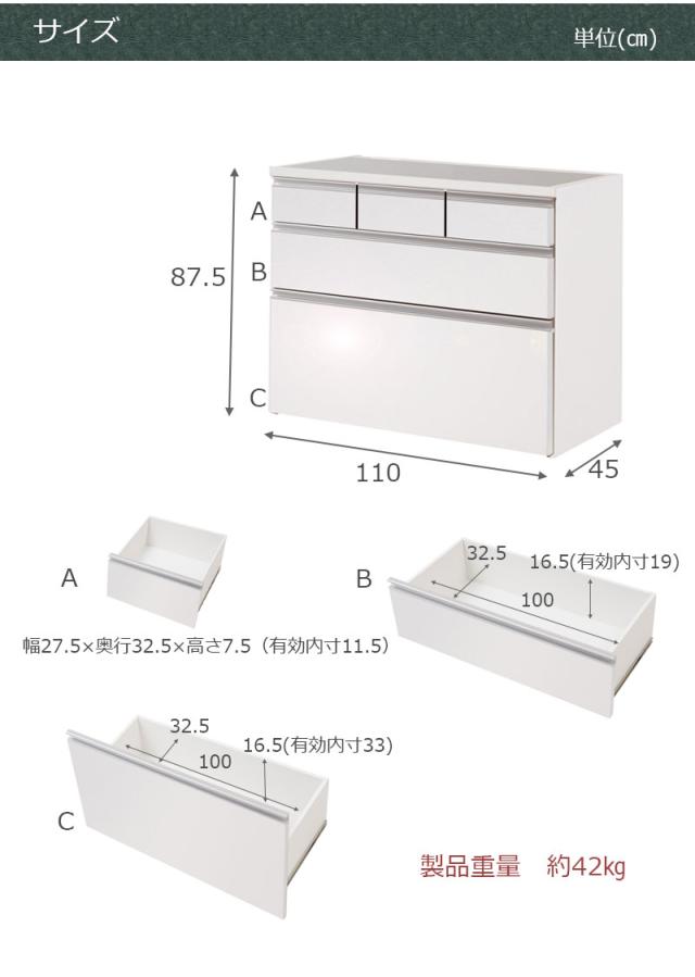 ■引出し内寸/(上)幅27.5×奥行32.5×深さ7.5〈有効11.5〉、幅100×奥行32.5×深さ(中)16.5〈有効19〉、(下)16.5〈有効33〉