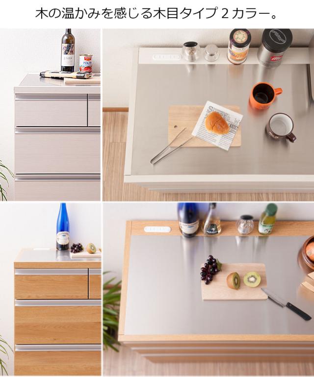 ■商品の仕様/前板:強化プリント紙化粧繊維板、天板:ステンレス貼り、その他:プリント紙化粧