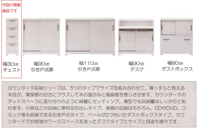 \ポイント消化!/ カウンター下収納 幅30 チェスト ホワイトウォッシュ