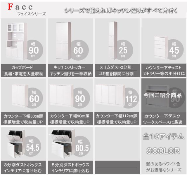 \ポイント消化!/ カウンター下収納デスク 幅90cm ホワイト キャビネット