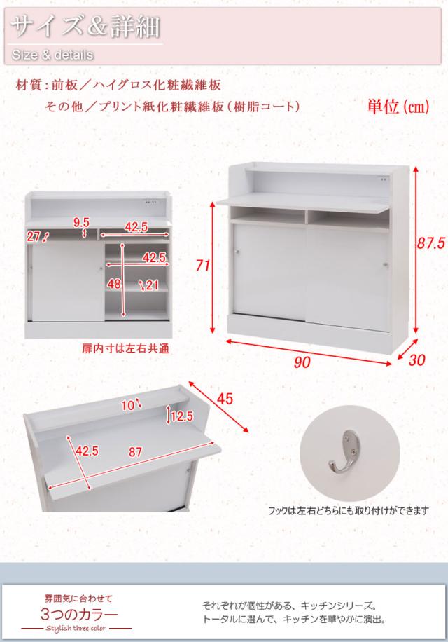 ●商品サイズ/本体:(約)幅90×奥行(本体30、デスク面部45)×高さ87.5cm