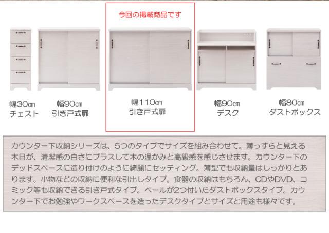 \ポイント消化!/ カウンター下収納 幅110 引戸 ホワイトウォッシュ