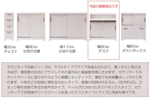 \ポイント消化!/ カウンター下収納 幅90 デスクキャビネット ホワイトウォッシュ