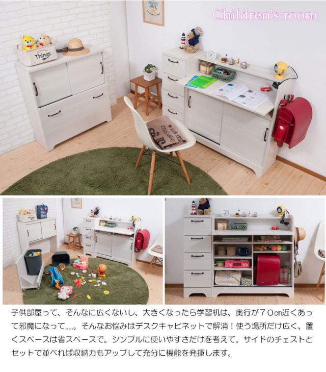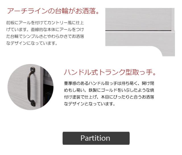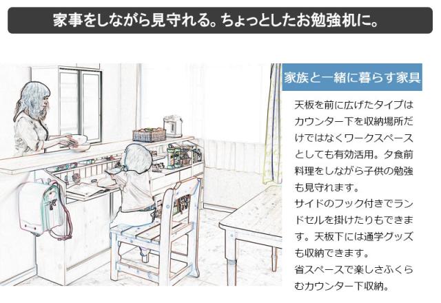 ■商品について/うっすら木目を生かしカントリーチックに仕上げたカウンター下シリーズ。鉄製トランク取っ手、アーチ状の台輪部など、細部にこだわったお洒落なシリーズ。省スペースで使える引戸式扉で、限られた空間に収納機能を凝縮。カウンター下やリビングなど様々なシーンで活躍する薄型デスクは幅90でコンパクト設計。収納充実でこどもの机としてもデザイン性高く可愛いデスク。引き戸式で邪魔にならないのも魅力。