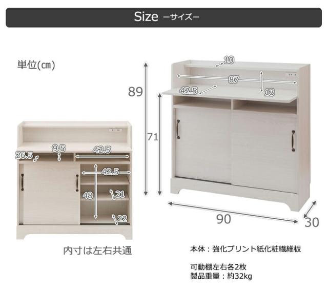 ■商品サイズ/本体:(約)幅90×奥行(本体30、デスク部含む45.5)×高さ89cm