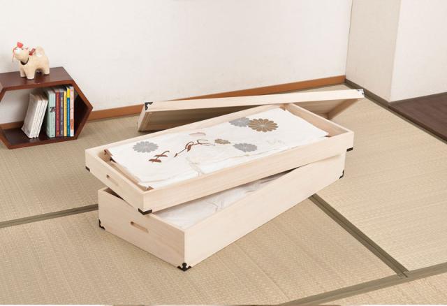 ■商品について/着物や浴衣の収納に定番の桐衣装箱。洋室などのフローリングにも合うデザインで和室だけでなく幅広いシーンにはまります。桐材は内部を一定の湿度に保とうとする働きがあるので大事な着物や洋服などを湿気から守る桐箱にしまうのがベスト。クローゼット上などコンパクトな1段タイプからラインナップし、着物や浴衣、洋服など長期保管に最適です。別売りの衣装盆で買い足し積み重ねができるので増える着物と洋服をしっかり収納。