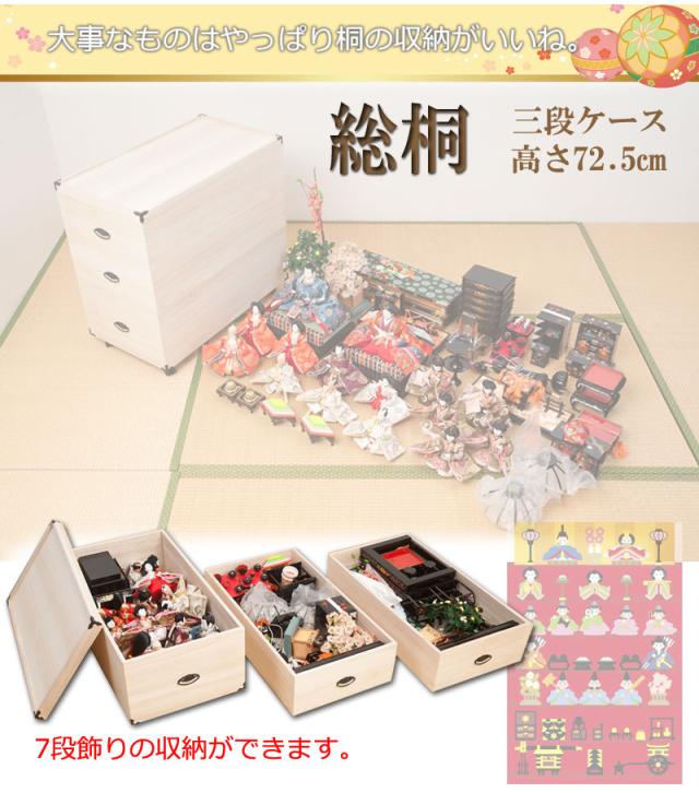 \ポイント消化!/ 総桐雛人形収納ケース3段 高さ72.5cmタイプ