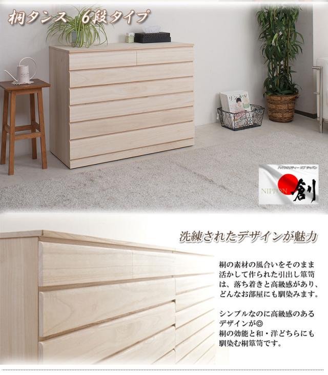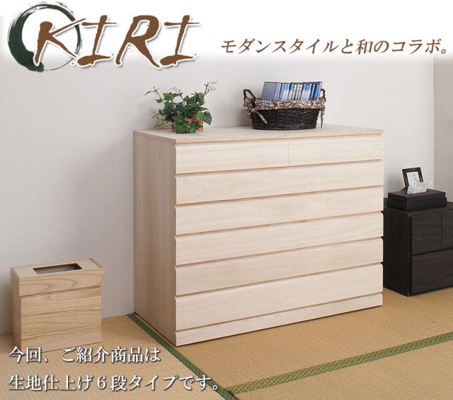 \ポイント消化!/ 桐洋風チェスト 6段 生地仕上げ モダン 天然木 チェスト たんす 桐箪笥 日本製