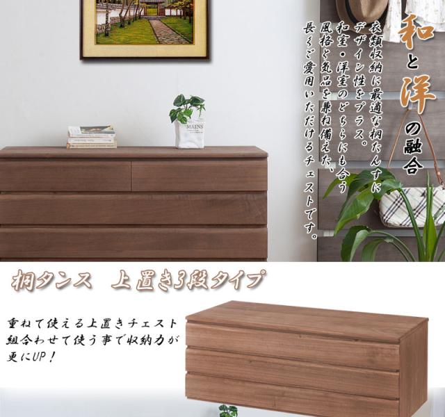 \ポイント消化!/ 桐洋風チェスト 3段 ブラウン モダン 天然木 チェスト たんす 桐箪笥 日本製