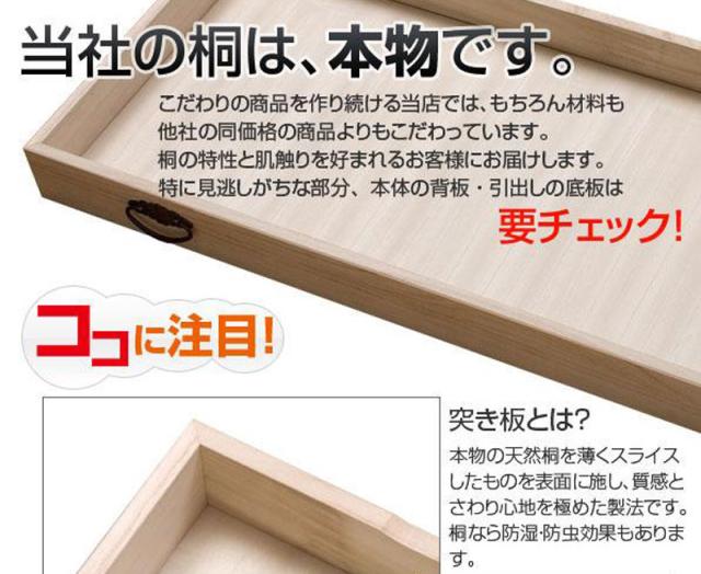 ■商品の仕様/本体:天然木桐材(水性塗装)、引出し底板・背板:天然木桐化粧板