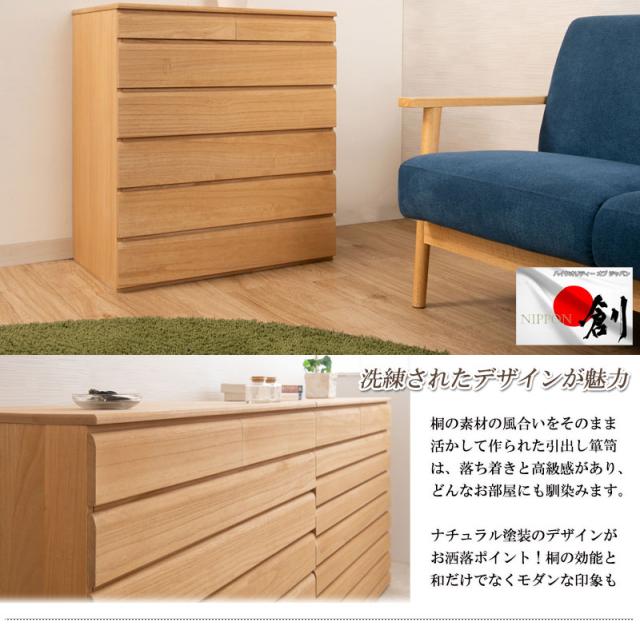 \ポイント消化!/ 桐洋風チェスト 6段 ナチュラル 幅71cm 日本製 帯 3つ畳収納 桐箪笥