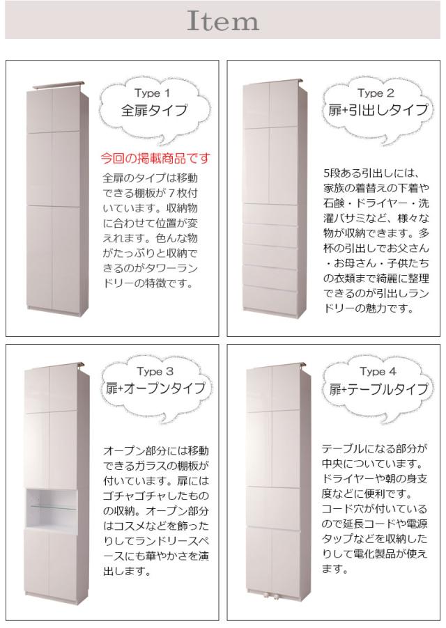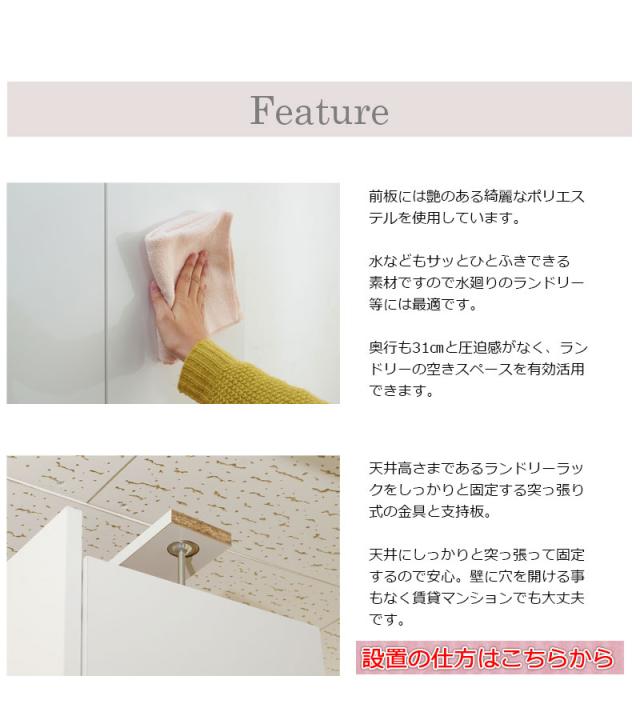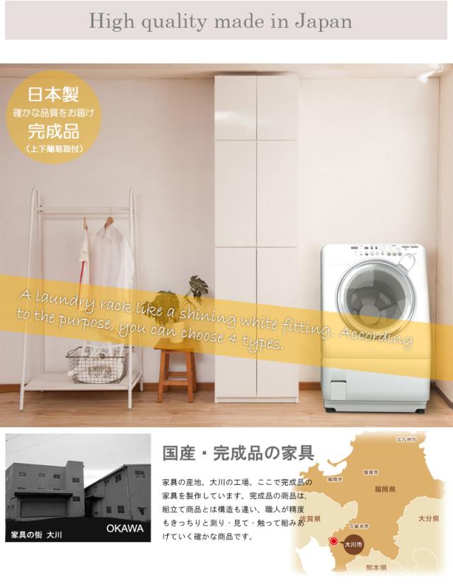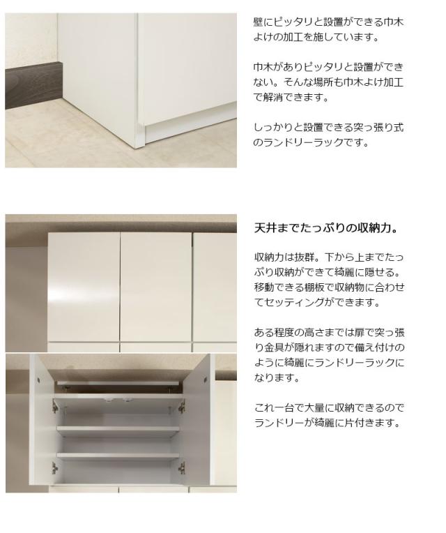 ■商品について/前板には水に強く、汚れもサッと拭き取れる光沢のあるポリエステルを使用。ランドリー廻りを整頓でき、常に綺麗に保てます。ランドリーに欠かせないのは、収納量。仕分けに便利な扉+引出タイプ、全扉タイプ、扉+オープンタイプ、扉+テーブル付タイプの4種で、使い勝手に合わせて選べます。奥行約31cmの省スペース設計で圧迫感なく天井近くまで収納できる棚が実現。