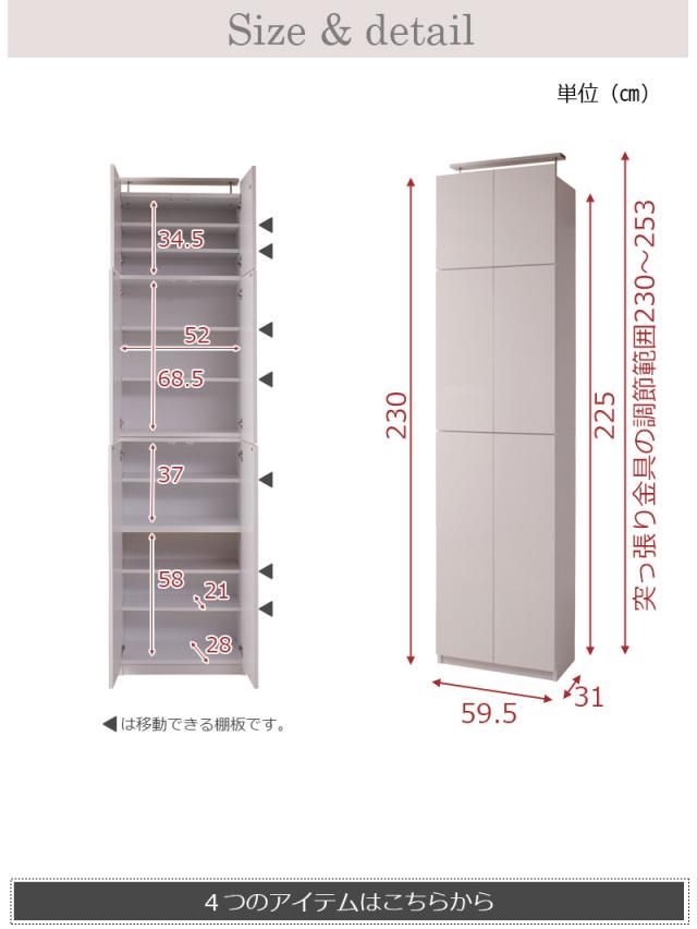■商品サイズ/本体:(約)幅59.5×奥行31×高さ230(立上がり扉高さ5cm含む)cm