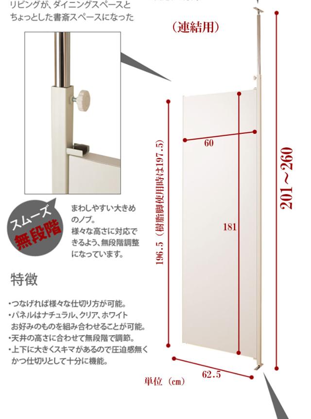 \ポイント消化!/ 突っ張り連結間仕切りパーテーションボード 幅62.5 連結用 ホワイト