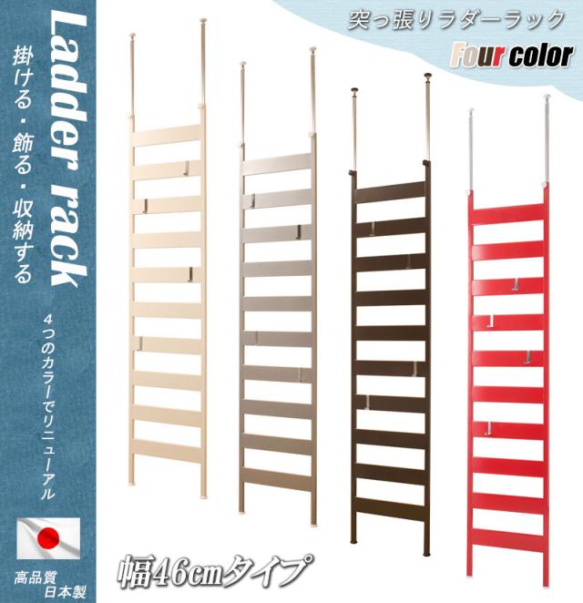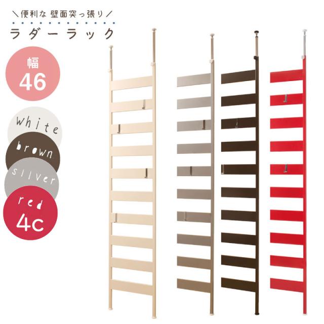 \ポイント消化!/ 壁面突っ張りラダーラック 幅46cm 4カラー ホワイト シルバー ブラウン レッド 日本製