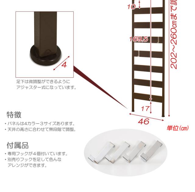■商品サイズ/本体:(約)幅46×奥行4×高さ202〜260cm、ラダー面下部〜上部高さ:(約)169.5cm、地面〜ラダー下部高さ:(約)17cm、ラダー部高さ:(約)8(ラダー間10)cm