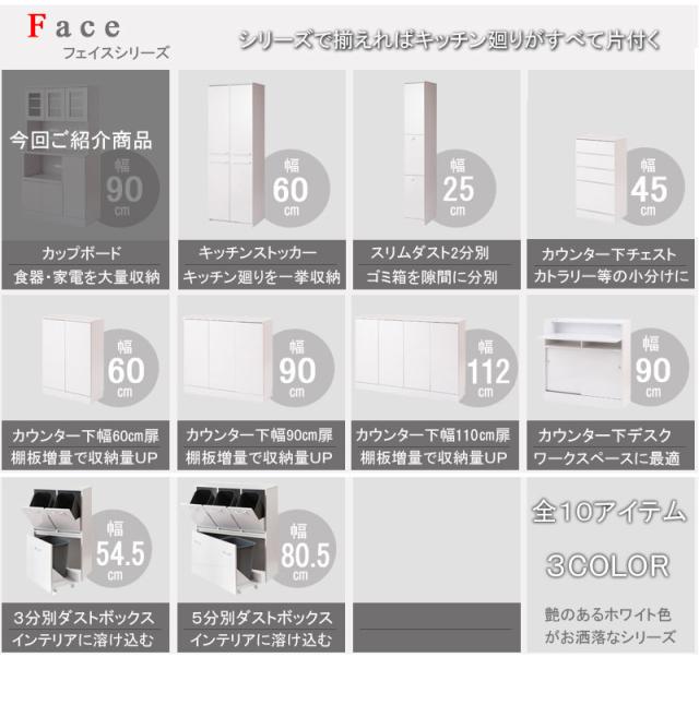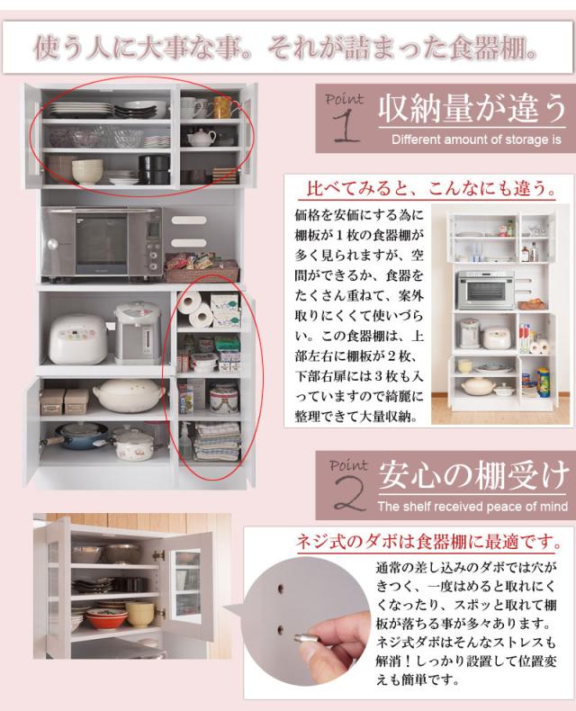 \ポイント消化!/ カップボード キッチンボード ホワイト 幅90cm