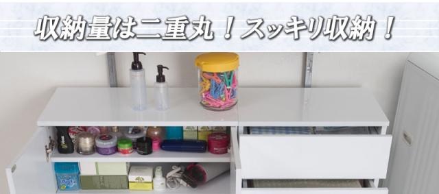 ■商品について/ランドリーはいつも清潔に!毎日忙しい主婦さんにおすすめ!水廻りはついつい汚れを見逃してしまいがち…。そんなときはこの商品にお任せ下さい!仕上げに、汚れに強いハイグロスシートを使用しており、水滴や付いてしまった汚れなどは、さっと拭くだけで簡単に取れます。なので、お掃除も楽々できちゃいます♪収納力もたくさんの引出しや扉でたっぷりです♪