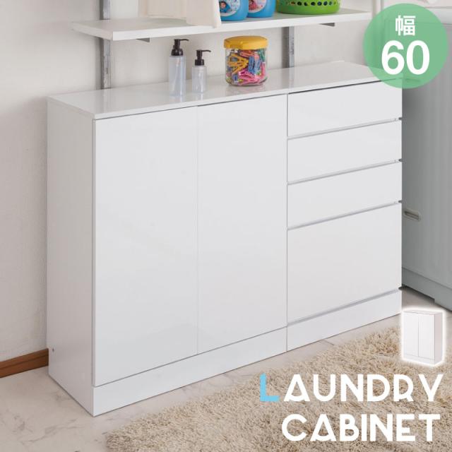 ■商品について/ランドリーはいつも清潔に!毎日忙しい主婦さんにおすすめ!水廻りはついつい汚れを見逃してしまいがち…。そんなときはこの商品にお任せ下さい!仕上げに、汚れに強いハイグロスシートを使用しており、水滴や付いてしまった汚れなどは、さっと拭くだけで簡単に取れます。なので、お掃除も楽々できちゃいます♪収納力もたくさんの引出しや扉でたっぷりです♪