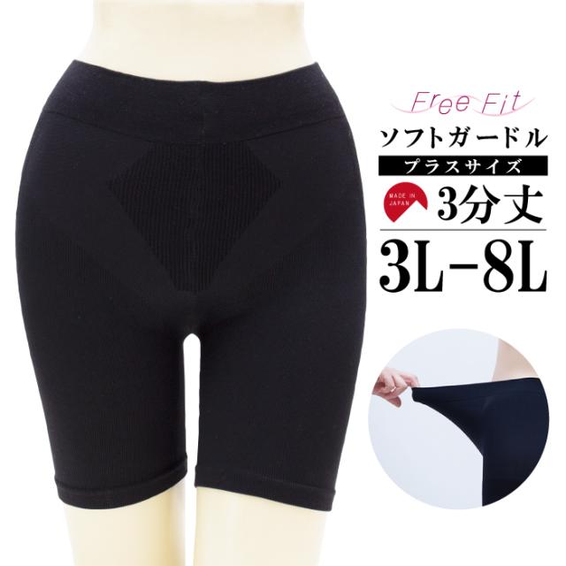 骨盤サポート ソフトガードル 3分丈 レディース ぽっちゃり メール便2足まで 日本製 FreeFit フリーフィット 大きいサイズ 3L 4L 5L 6L 7L 8L プラスサイズ ヒップアップ お腹痩せ 超のびのび レガルト